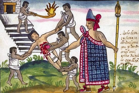 By nie doszło do katastrofy w ściśle określonym czasie trzeba było karmić bogów krwią. Inaczej – bez bijących jeszcze, ciepłych serc, dopiero co wyrwanych z klatek piersiowych ludzi złożonych w ofierze – bóstwa mogłyby zniszczyć znany Indianom świat. Ofiar z ludzi domagał się zwłaszcza Tezcatlipoca („Dymiące Zwierciadło”) – jeden z dwóch najważniejszych Bogów azteckiego panteonu. To krwiożercze bóstwo dało im ogień, było bogiem opatrzności i losu, a także grzechu i ciemności. By zaspokoić „Dymiące Zwierciadło” Aztekowie musieli co rusz najeżdżać sąsiednie plemiona i uprowadzać stamtąd jeńców, których później rytualnie zabijano.
